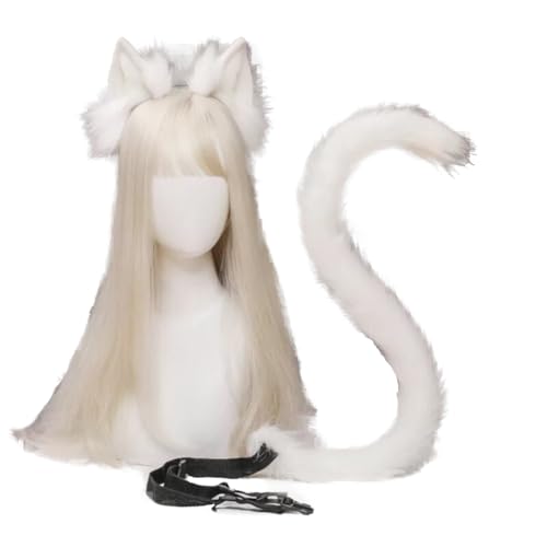 [TatickCuftumes] きつねみみ きつねしっぽ セット 狐 狼 耳 尻尾 きつね尻尾 しっぽ 手作り モコモコ アクセサリー コスプレ コスチューム 用 衣装 仮装 変装 文化祭 イベント パーティー 学園祭 お遊戯 ハロウィン 用にも 男女兼用 (ホワイト) [並行輸入品]