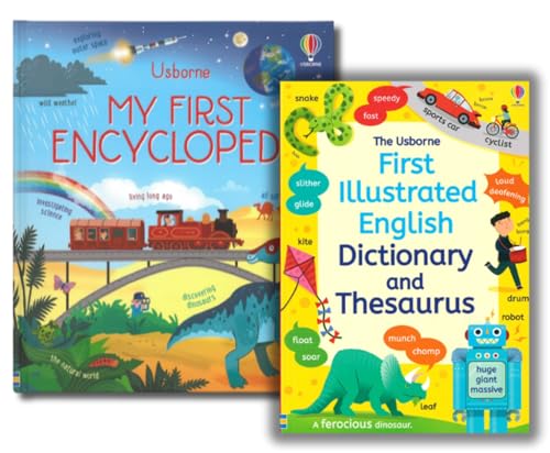 【英英辞典+百科事典】イギリス英語をしっかり学ぶための 英英辞典・類語辞典×百科事典セット|Usborne Illustrated English Dictionary and Thesaurus×My First Encyclopedia|理科・地理・歴史など英語で知識を身に付ける|中学生~