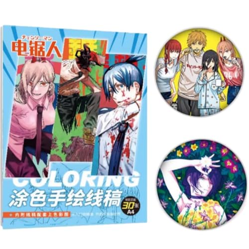 チェンソーマン 塗り絵 手描き本 バッジ ぬりえ帖 デンジ/マキマ/ポチタ 手描き 着色 色彩設計 スケッチ本 デザインポスター 文房具 落書きノート イラスト画集 初心者 学生 子供 誕生日 プレゼント (絵本) [並行輸入品]