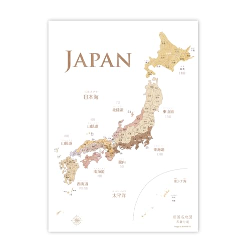 旧国名の木目調 日本地図 ポスター A2サイズ 歴史 戦国 武将 室内用 インテリア 知育 ソノリテ